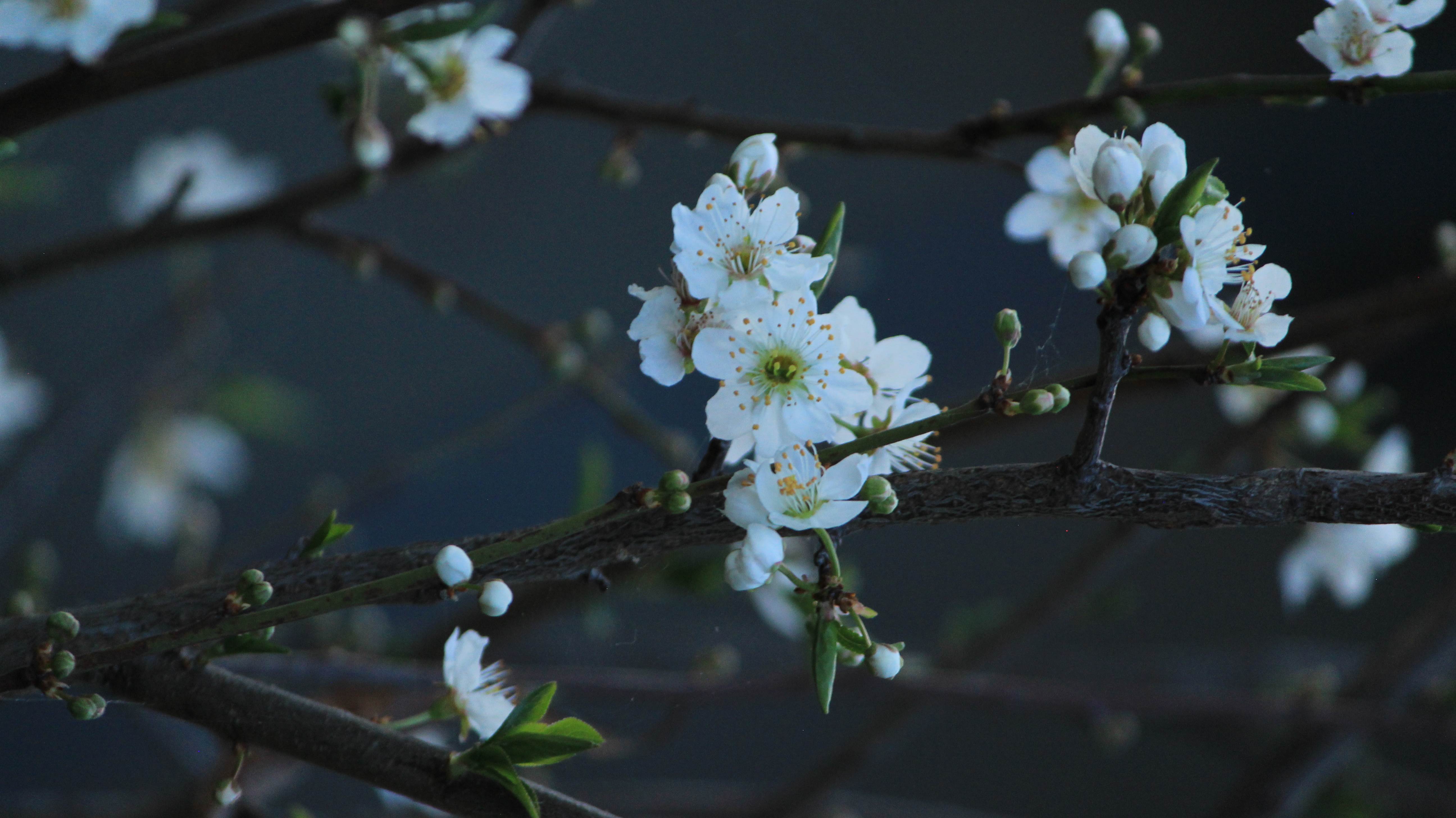 Una de tantas flores del árbol de durazno, en esta imagen podemos ver qué,el clima o la "calides" es fría , y obtenemos una mejor visualización de los tonos blancos y azules, resaltando así la flor del durazno, está foto también es con la rebel t6 y un lente 55 250 mm.
