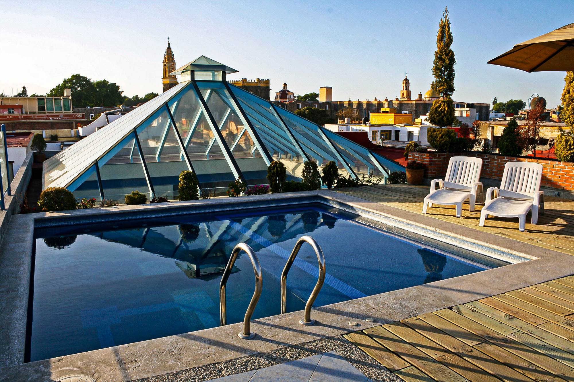 Esta imagen es el clásico ejemplo de estar en el lugar y momento precisos, la luz del sol crea algunos efectos interesantes en la foto, primero la dominante cromática cálida que le da un aspecto nostálgico y por otro la dirección de la luz, se crean sombras alargadas que contrastan con los objetos que la provocan, al fondo se puede ver el templo y convento de San Gabriel de la ciudad de Cholula