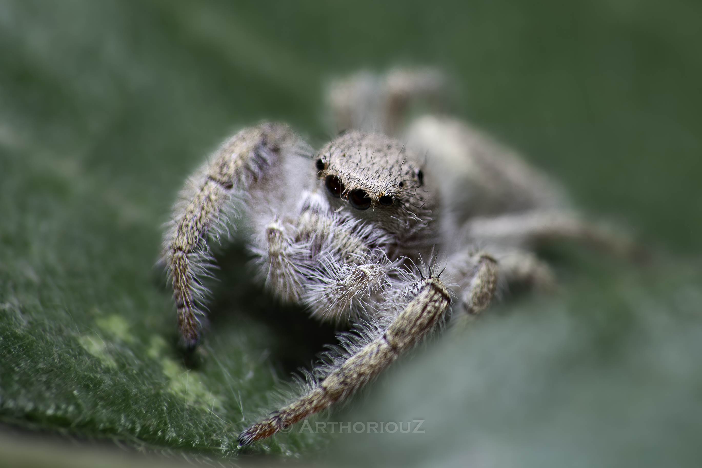 Localidad: La Estanzuela, Monterrey, Nuevo León, México. Me quedé al anochecer en el zona natural practicando la foto macro nocturna, y encontré varios bichos, pero la que mas me gustó observar fue esta araña, ya que la vi cazando y aproveche que se quedó quieta un momento para lanzarse sobre su presa que era un pequeño homóptero. para la historia completa aqui un enlace https://vt.tiktok.com/ZS56gwT1G/
