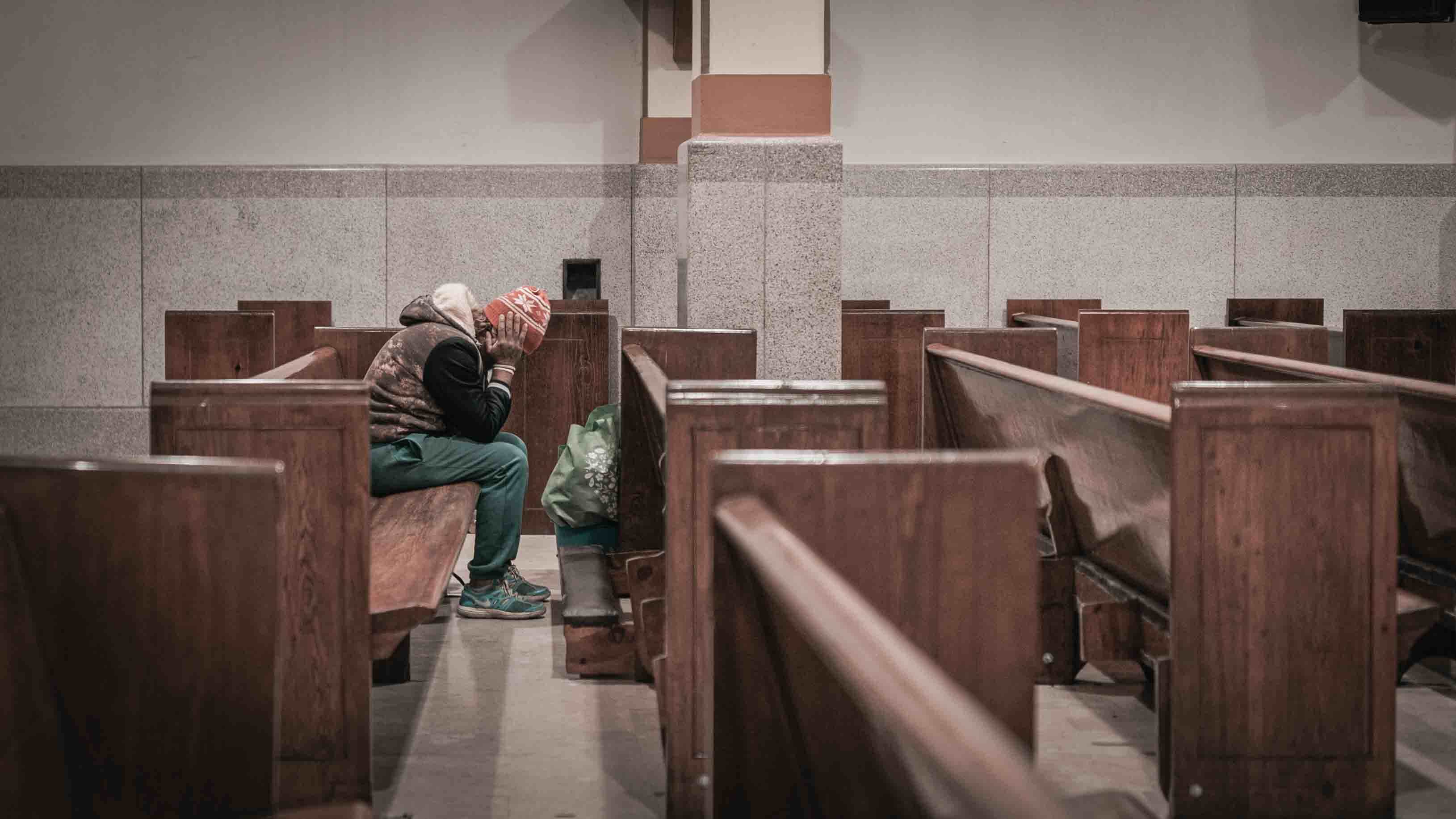 Un migrante en oración, mientras realiza su viaje al sueño americano. Los migrantes viajan, no sabemos si comen, se bañan, si están enfermos o no. La fe es lo que los mueve, pasan horas y días en la iglesia.